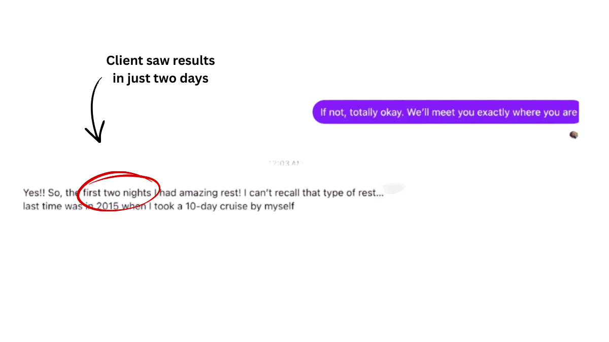 The 3AM Sleep Reset works with the now, not the past. The nervous system updates in real time so deep diving into old stories is not required.